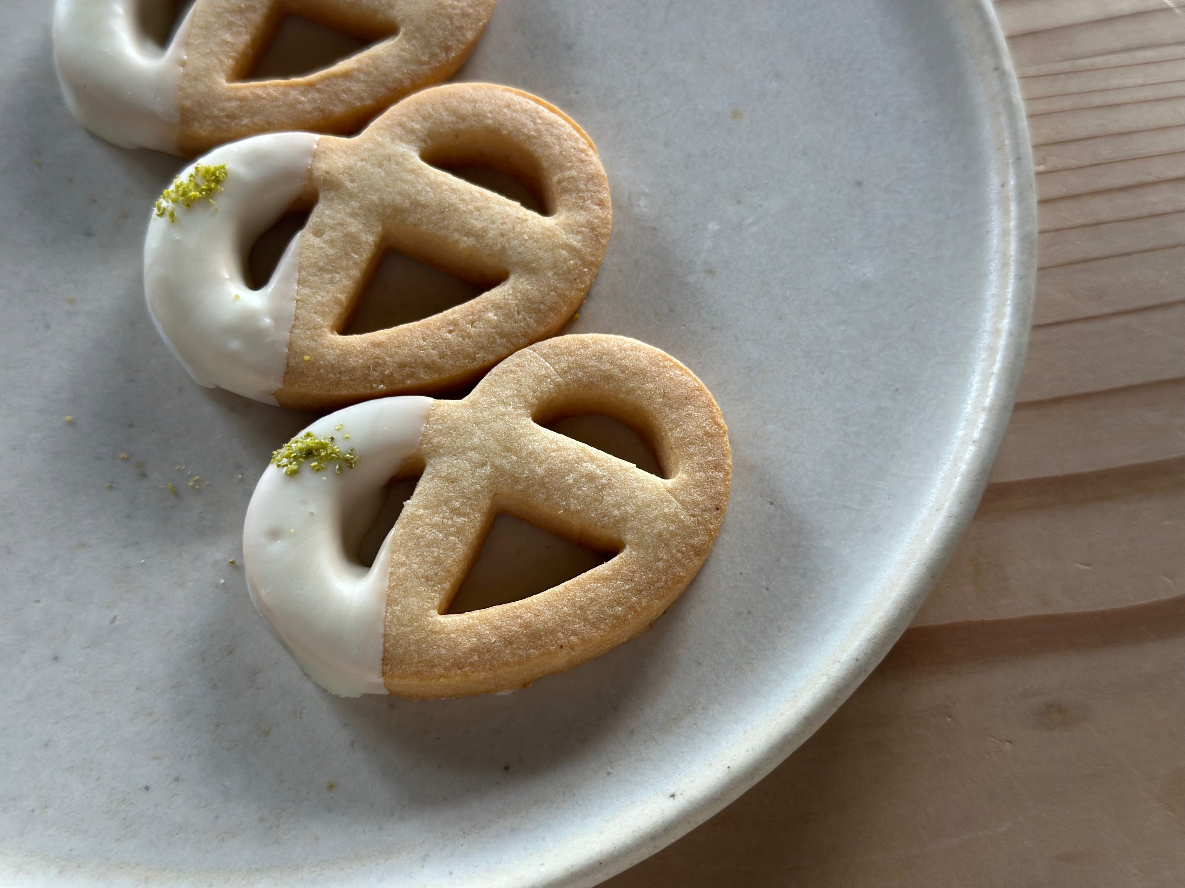 ピスタチオとクランベリーショートブレッド、抹茶とナッツの柊クッキー、くるみのブールドネージュ、そしてはちみつとバターのサブレの冬のおすすめ詰め合わせセット。
