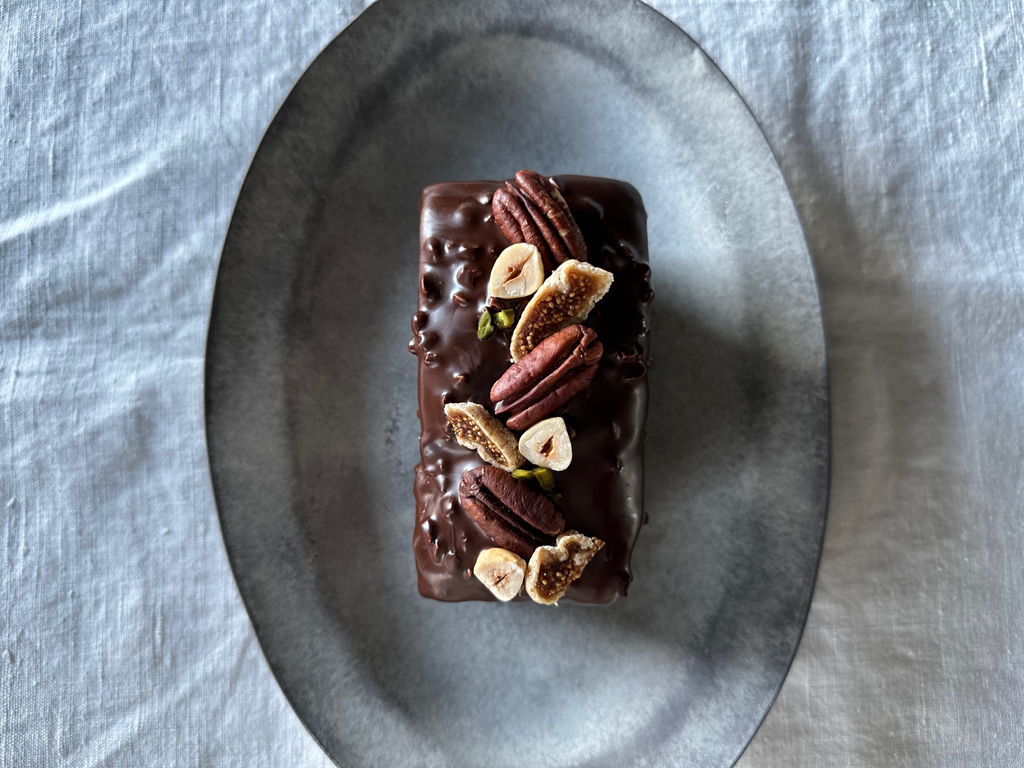 コーティングし、ナッツやドライフルーツで飾りました。